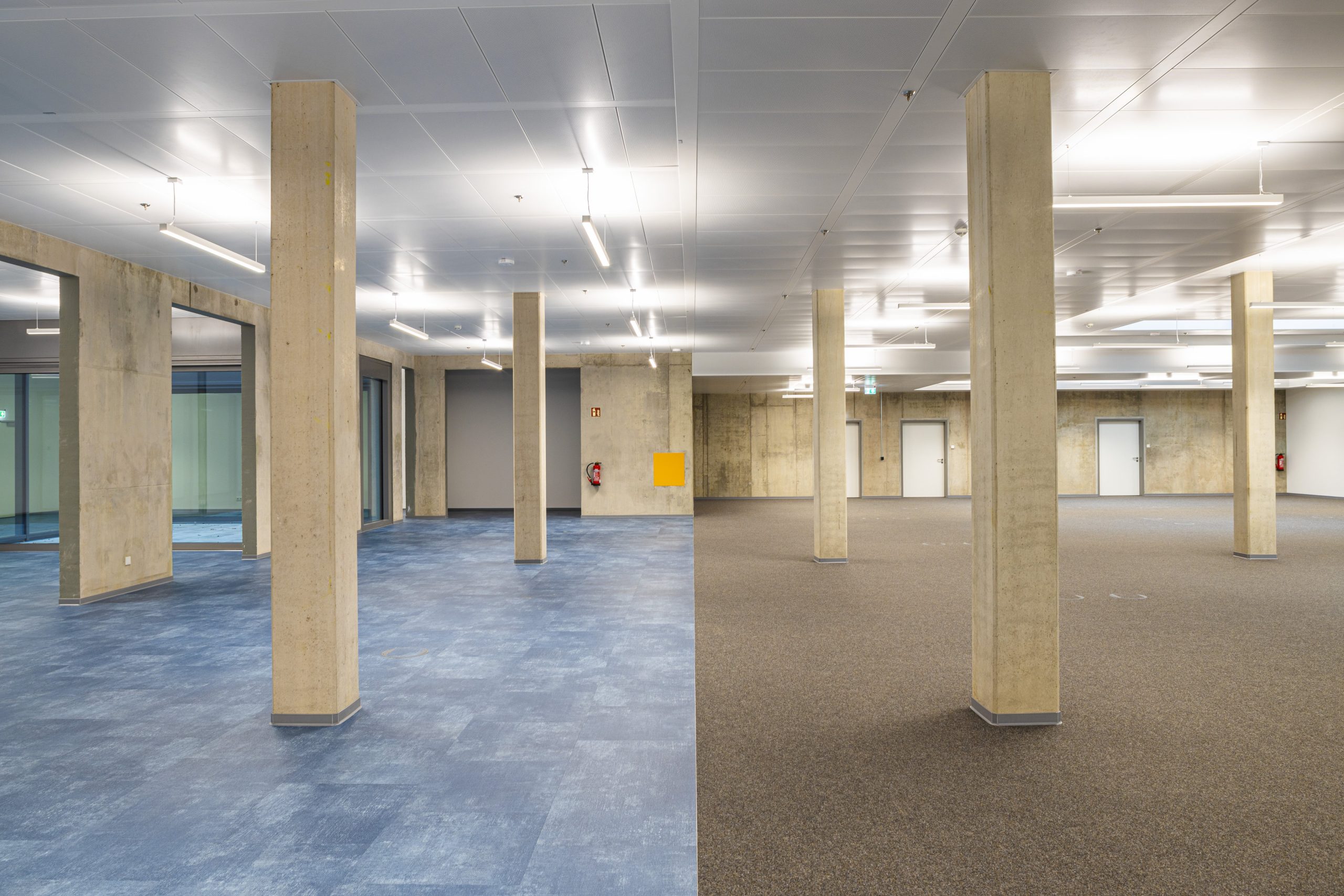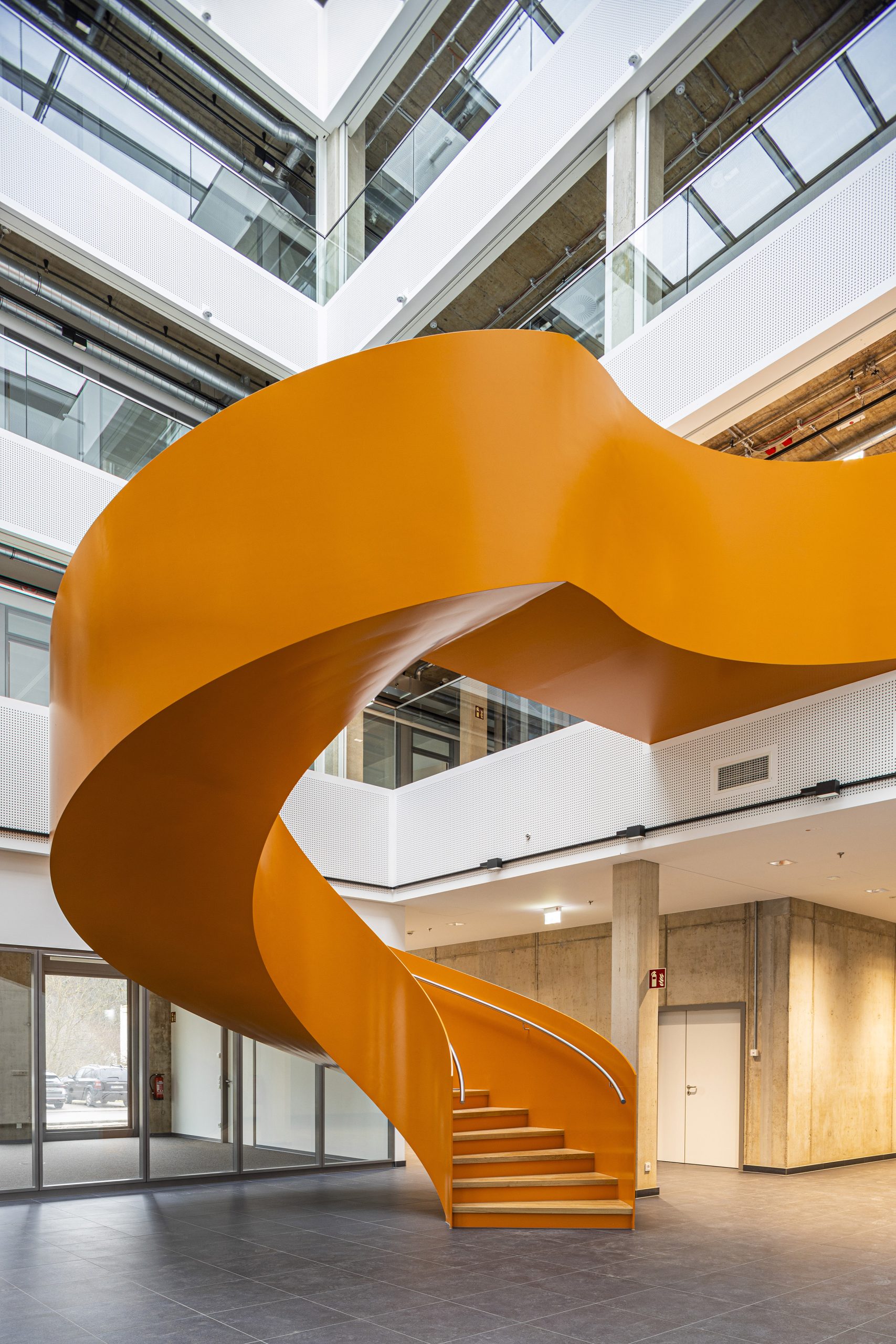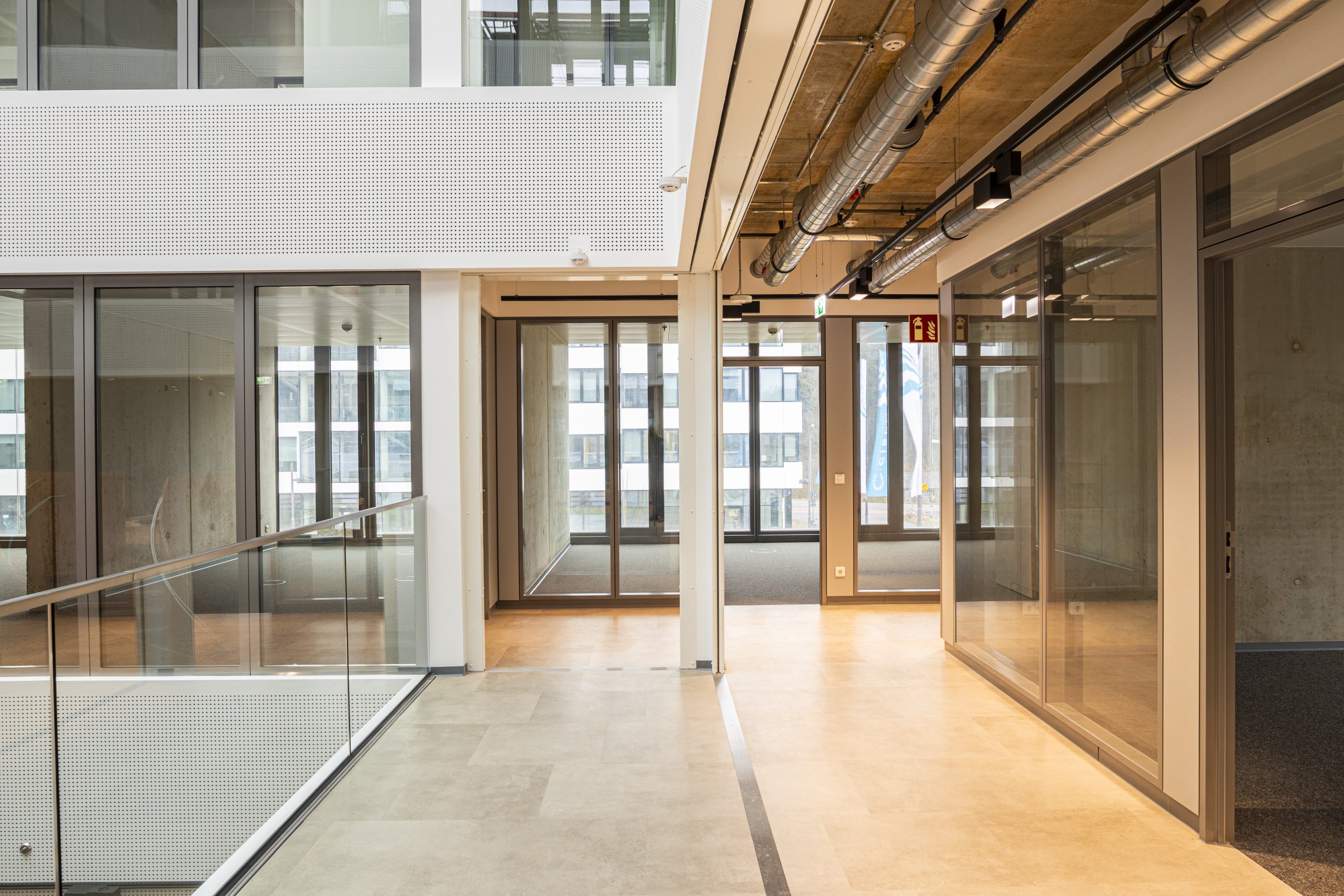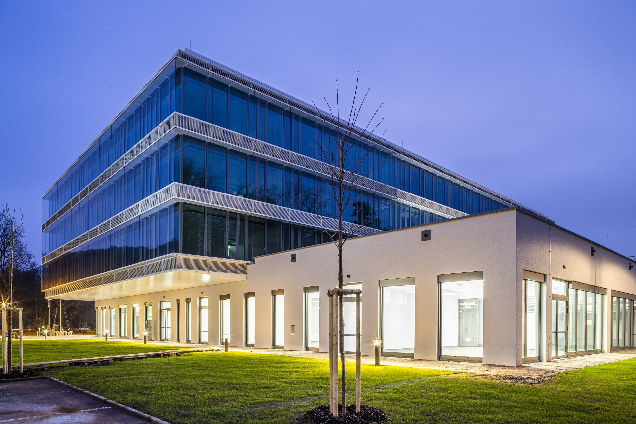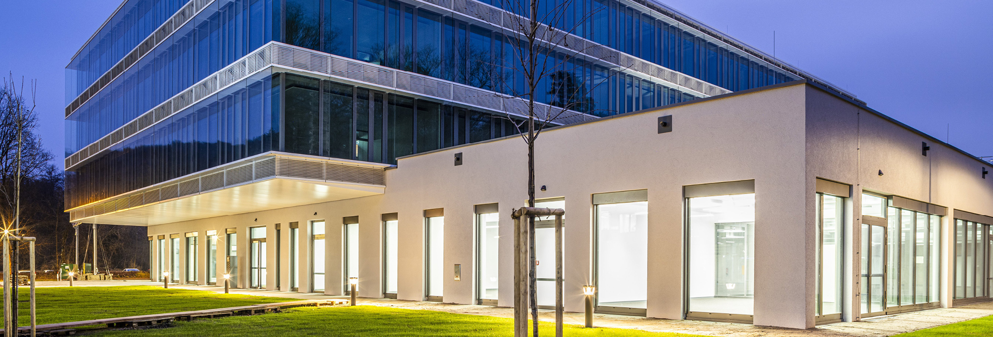 In line with the preceding planning, this modern, functionally variable building offers staff perfect conditions and an attractive working environment. The new construction has generous office spaces furnished with modern equipment, as well as numerous seminar and communication areas networked with media technology.
